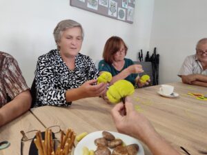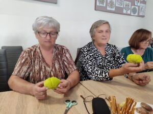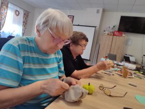 Dziś odbyły się warsztaty szycia jesiennych dyń z materiałów z recyklingu. Seniorzy pokazali, że z wyobraźnią i odrobiną cierpliwości można stworzyć prawdziwe cuda – kolorowe, miękkie i wyjątkowe ozdoby, które wprowadzą jesienny klimat do każdego domu.
