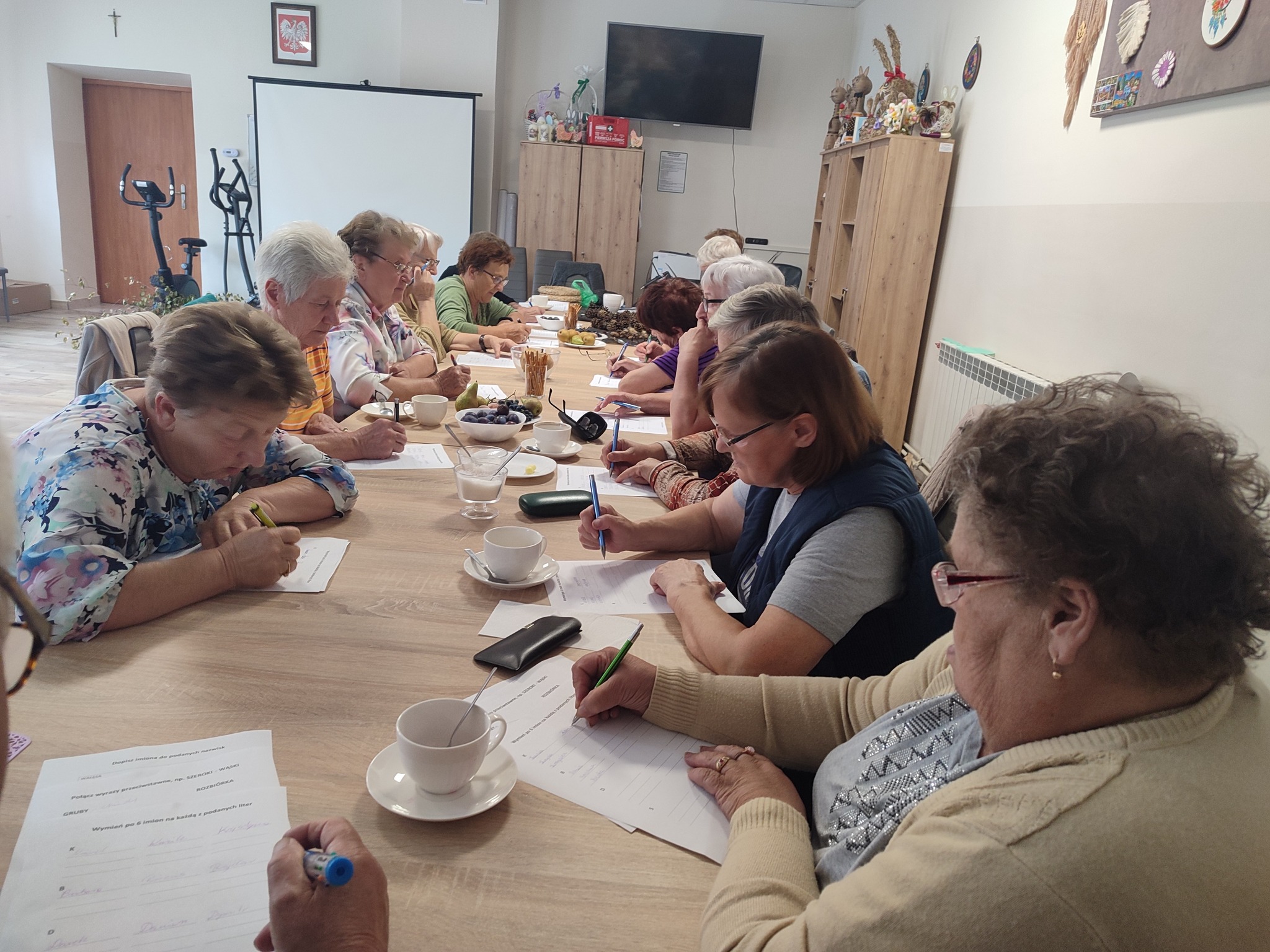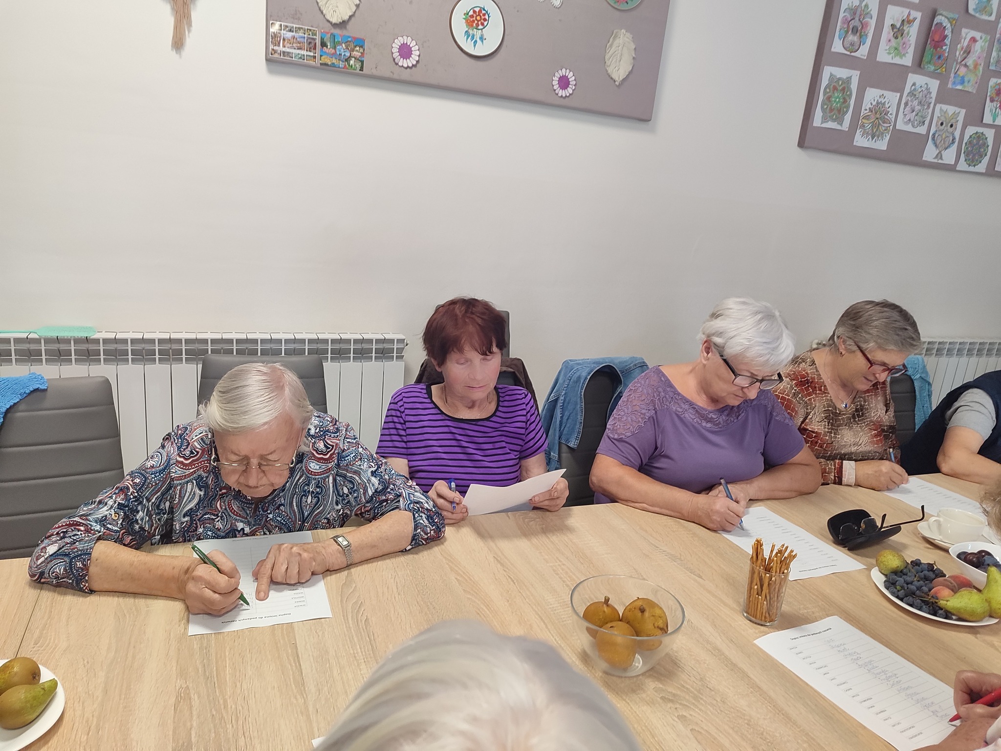 Na deser odbyły się ćwiczenia pamięciowe – krzyżówki, zagadki i zabawy umysłowe, które rozweseliły wszystkich i pokazały, że nasz Klub to miejsce, gdzie dba się zarówno o ciało, jak i umysł.