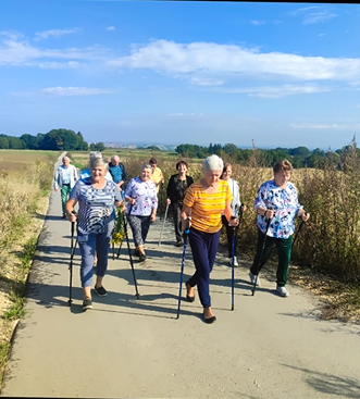 Dziś w naszym Klubie Seniora w Górach było wyjątkowo aktywnie i smacznie!Seniorzy wybrali się na spacer z kijkami, korzystając z pięknej pogody i świeżego powietrza. Po powrocie czekała na wszystkich pyszna niespodzianka – panie przygotowały zdrowe, kolorowe kanapki oraz świeże owoce z własnego ogrodu.To