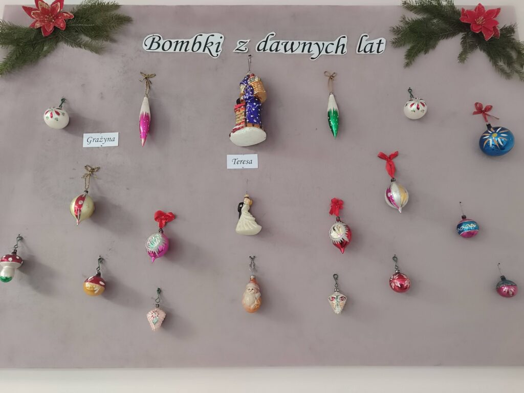 Nie zabrakło także chwili na małą podróż w czasie – młodsi uczestnicy mogli podziwiać wystawę bombek z dawnych lat, którą przygotowali nasi seniorzy. Przynieśli na nią swoje najcenniejsze, często ręcznie robione ozdoby, niosące w sobie wspomnienia sprzed wielu lat.